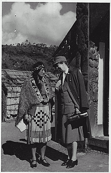 ER talking with a Maori woman in Wellington, New Zealand